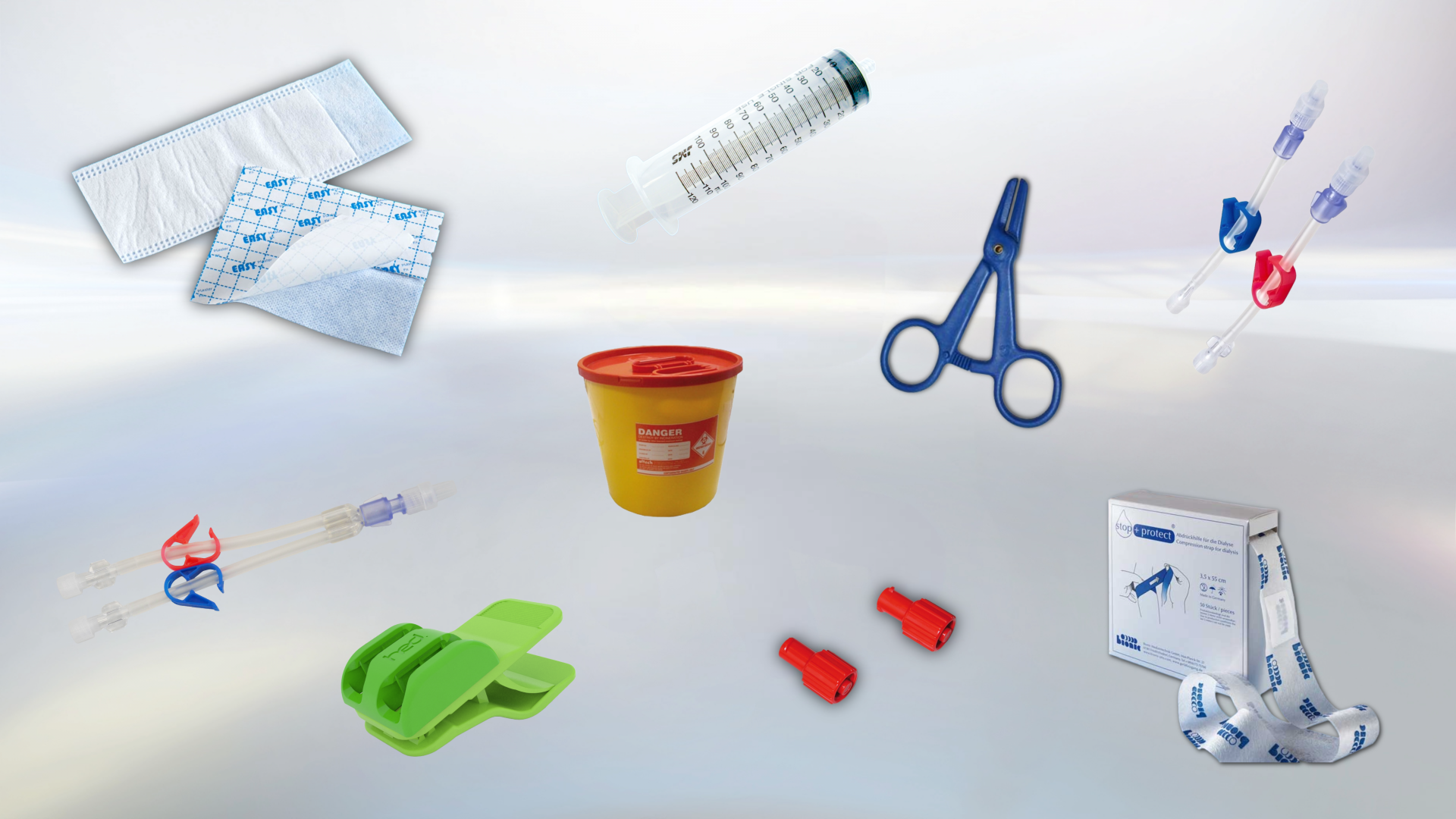 Our connection and disconnection sets play a crucial role in dialysis, as they make the treatment process safer and more efficient. These sets contain all the necessary components for the quick and sterile connection and closure of the catheter to an extracorporeal circuit, as well as for the puncturing of a cannula. They minimize the risk of infection, as all parts are perfectly matched, reducing the need for manual steps. They also increase efficiency by streamlining the supply process, saving valuable time for medical staff and improving patient safety.
